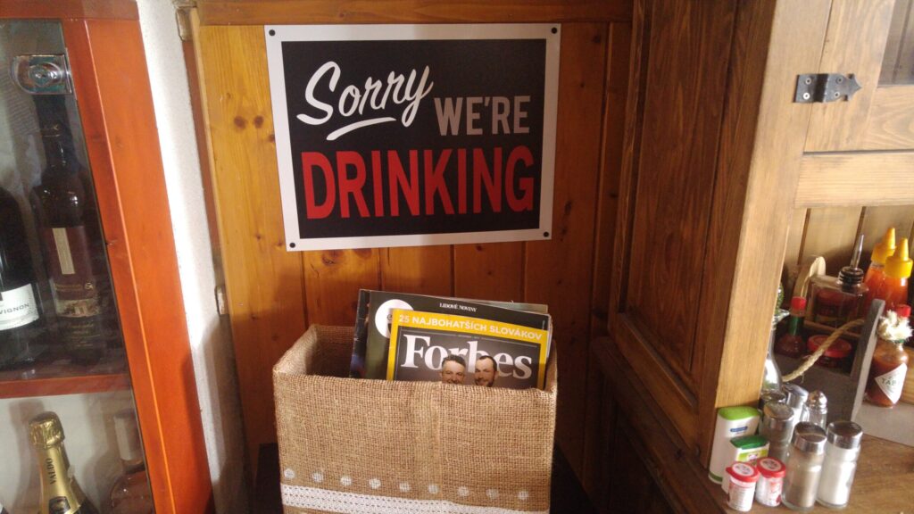 The restaurant serves hearty mountain meals—soups (the goulash is fantastic!) and local dishes. Beer is around €5, and there’s a terrace outside where you can also eat your own food. Breakfast is impressive: a big buffet with bacon, sausages, boiled and fried eggs, cereals, yogurts, desserts, vegetables, cheeses, cold cuts—and even sparkling wine, for anyone in the mood for a fancy morning.