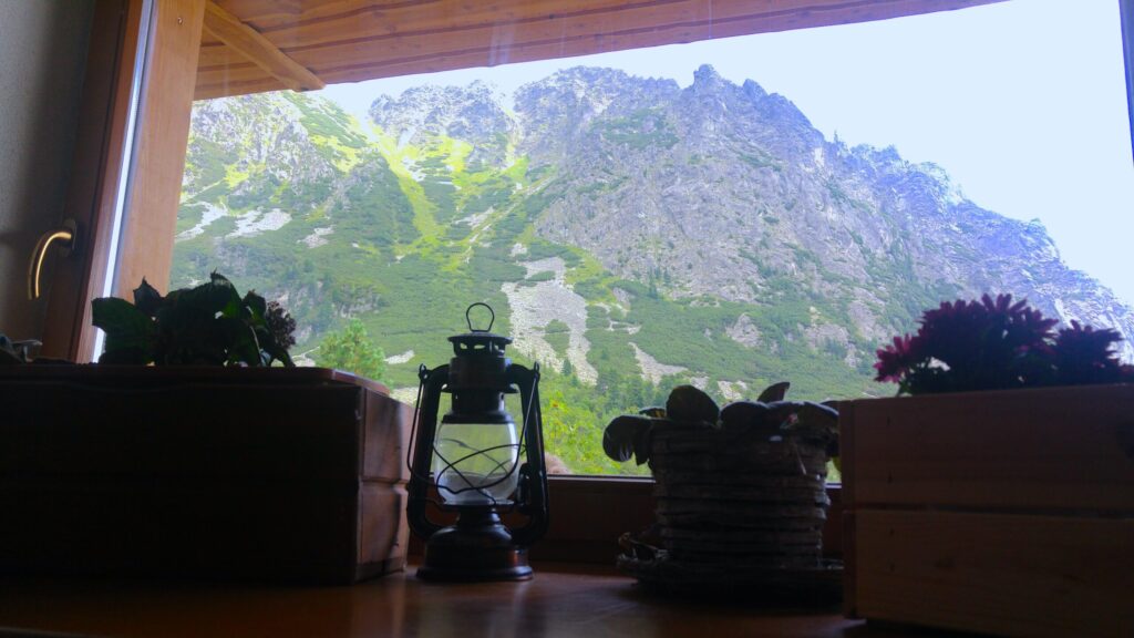You’ll find two huts at Popradské Pleso. The smaller one, Majláthova Chata, offers food and drinks with outdoor seating. The larger wooden building is a hotel, with rooms ranging from €30–60 a night depending on season and day.