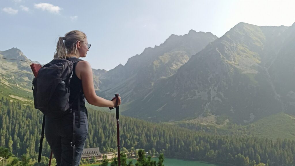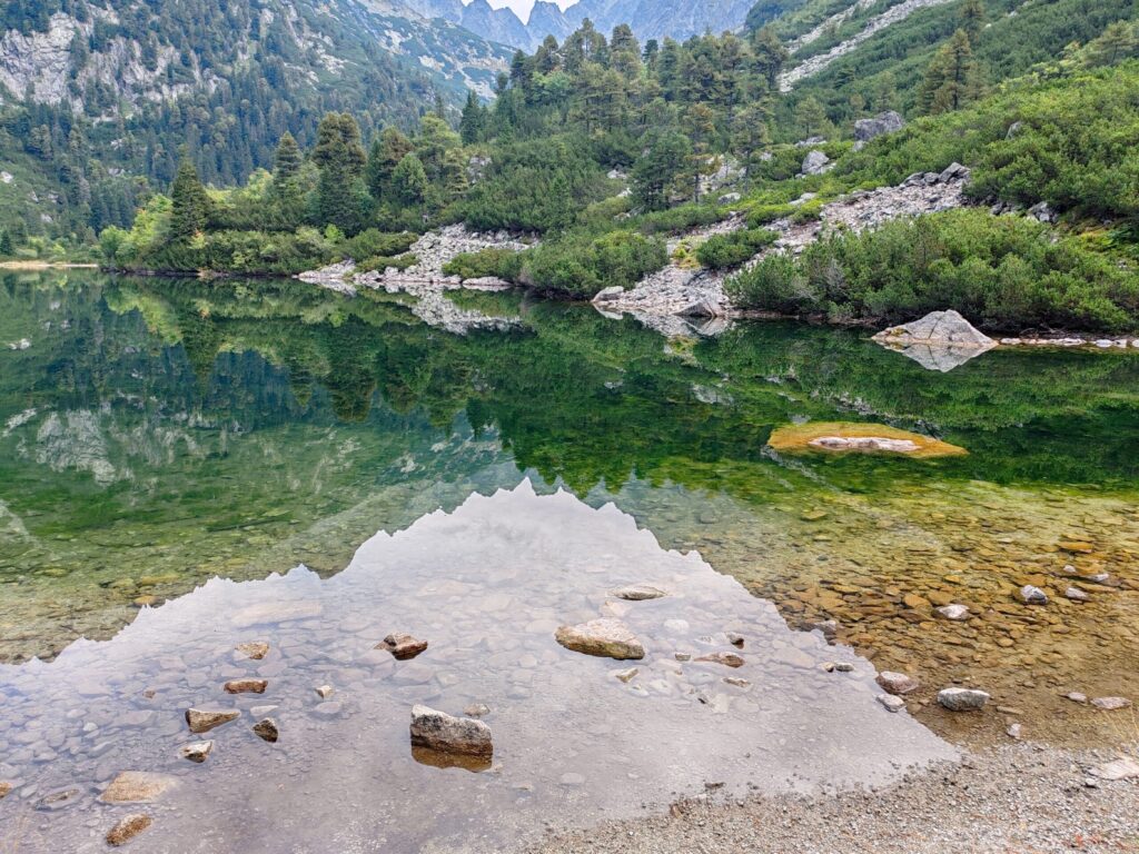 The valley here is beautiful, with a majestic lake and countless epic views that make you stop and wonder. Compared to Rysy, the crowds are smaller, which makes the trail feel calmer. I also enjoy the part where you cross the stream by hopping rocks—it’s a little Indiana Jones moment in the Tatras. Both times I hiked here, I was lucky enough to spot chamois (mountain goats) climbing the slopes.