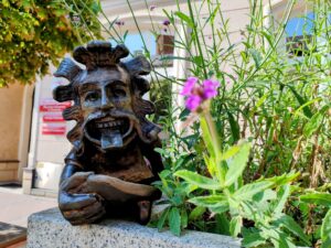 Soon I learned that Tarnów is full of interesting details and quiet surprises. The first one I encountered was a small metal book reader casually sitting by the sidewalk. Later, I found more of them — a tongue-out dude, and another one with a fancy hat. What seemed like randomly popping up metal creatures turned out to be something quite intentional: the Mascarons of Tarnów.