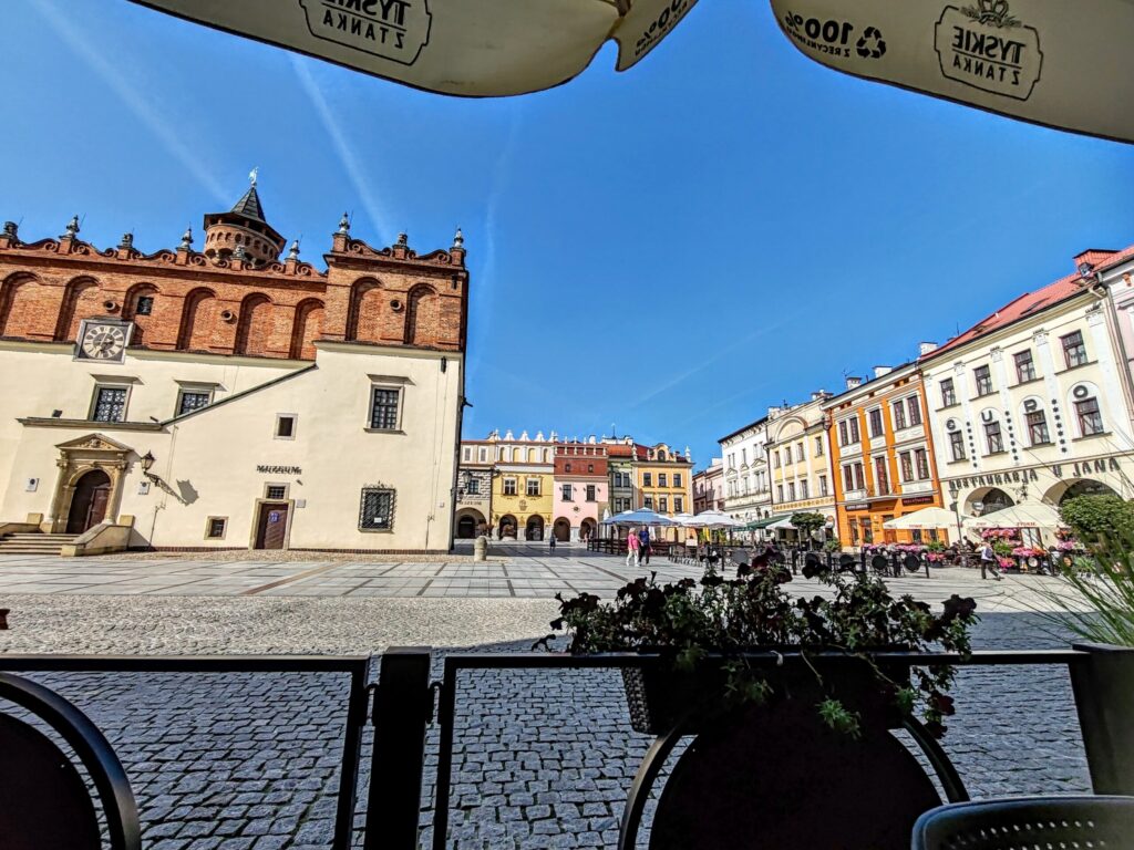 I lingered there for a while, trying to breathe in all the history the square holds, before making my way back toward the market square in search of a drink. I noticed the word browar, which in my experience usually means it’s time for a good beer. Moments later, I was trying something special: Tyskie z Tanka — an unpasteurized lager poured directly from the tank, with a strict fourteen-day limit after opening. It’s served only in select places, and one of them happens to be here in Tarnów. Honestly, the beer itself wasn’t extraordinary — but the view absolutely was.